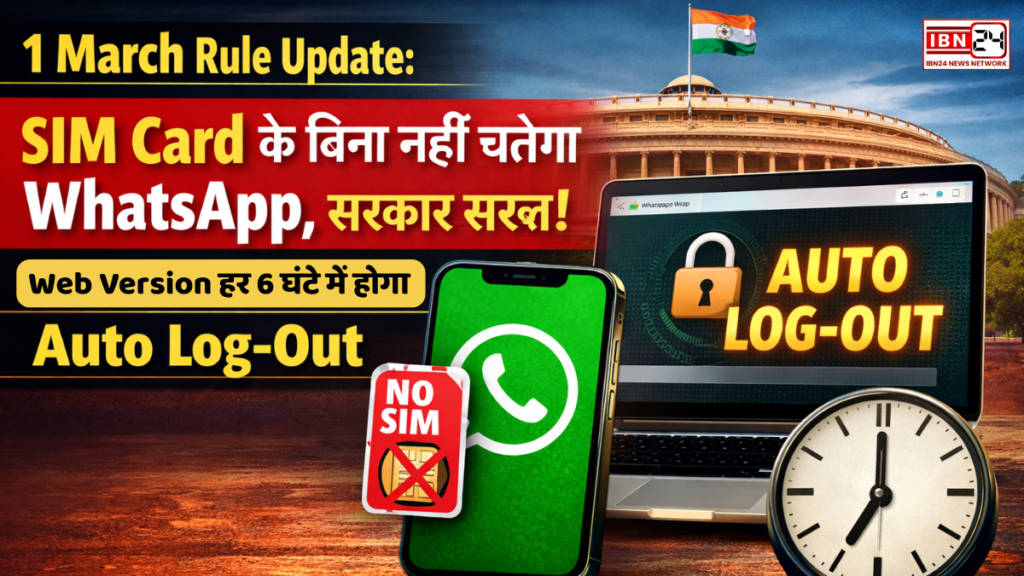 1 March Rule Update: SIM Card के बिना नहीं चलेगा WhatsApp, सरकार सख्त—Web Version हर 6 घंटे में होगा Auto Log-Out! डिजिटल सुरक्षा और धोखाधड़ी पर लगाम लगाने के लिए केंद्र सरकार ने एक बड़ा कदम उठाया है। 1 मार्च 2026 से WhatsApp जैसे मैसेजिंग ऐप्स के लिए नए नियम लागू होने जा रहे हैं, जिनके तहत अब सिम कार्ड के बिना WhatsApp चलाना संभव नहीं होगा। इसके साथ ही, WhatsApp वेब वर्जन भी हर 6 घंटे में ऑटोमेटिकली लॉग-आउट हो जाएगा। सरकार ने इन नियमों को लागू करने की समय-सीमा बढ़ाने से साफ इनकार कर दिया है, जिससे यह स्पष्ट है कि डिजिटल सुरक्षा को लेकर सरकार कितनी गंभीर है।