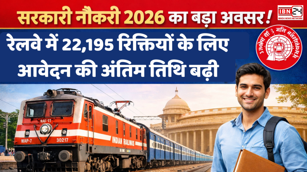 Big opportunity for government job 2026: रेलवे में 22,195 रिक्तियों के लिए आवेदन की अंतिम तिथि बढ़ी! रेलवे भर्ती बोर्ड (RRB) द्वारा जारी अधिसूचना के अनुसार, इन पदों के लिए आवेदन प्रक्रिया 31 जनवरी 2026 को शुरू हुई थी। प्रारंभिक अंतिम तिथि 2 मार्च 2026 थी, जिसे अब बढ़ाकर 9 मार्च 2026 कर दिया गया है। आवेदन शुल्क जमा करने की अंतिम तिथि 11 मार्च 2026 है । उम्मीदवारों को सलाह दी जाती है कि वे अंतिम समय की भीड़ से बचने के लिए जल्द से जल्द आवेदन करें।