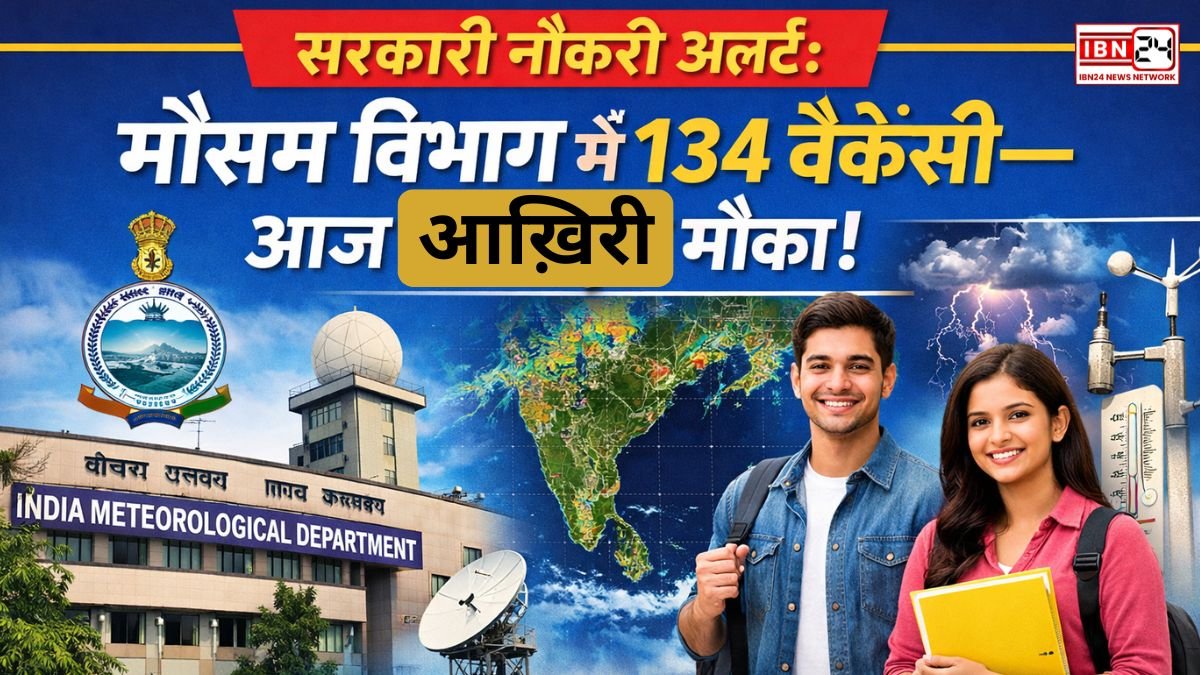 सरकारी नौकरी अलर्ट: मौसम विभाग में 134 वैकेंसी—आज आख़िरी मौका, ग्रेजुएट्स से लेकर M.Tech तक करें फटाफट आवेदन! चूंकि आवेदन की अंतिम तिथि आज (14 दिसंबर 2025) है, इसलिए उम्मीदवारों को बिना देर किए तुरंत ऑनलाइन आवेदन करना चाहिए।