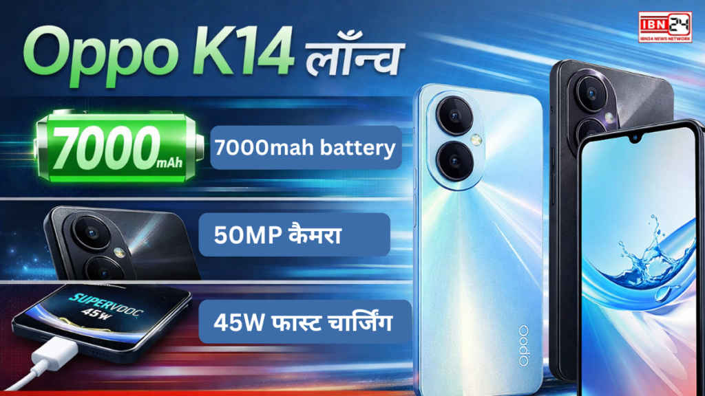 Oppo K14 launched with 7000mah battery, 50MP कैमरा और 45W फास्ट चार्जिंग, कीमत सिर्फ ₹17,999 से शुरू! स्मार्टफोन बाजार में लगातार बढ़ती प्रतिस्पर्धा के बीच, ओप्पो (Oppo) ने भारत में अपनी K-सीरीज का नवीनतम स्मार्टफोन ओप्पो K14 5G लॉन्च कर दिया है। यह नया डिवाइस उन उपभोक्ताओं को लक्षित करता है जो किफायती दाम में दमदार बैटरी लाइफ, शानदार कैमरा और मजबूत परफॉर्मेंस चाहते हैं। ₹17,999 की शुरुआती कीमत के साथ, ओप्पो K14 5G ने मिड-रेंज सेगमेंट में अपनी जगह बनाने की तैयारी कर ली है, खासकर अपनी 7000mAh की विशाल बैटरी और मिलिट्री-ग्रेड ड्यूरेबिलिटी के साथ ।