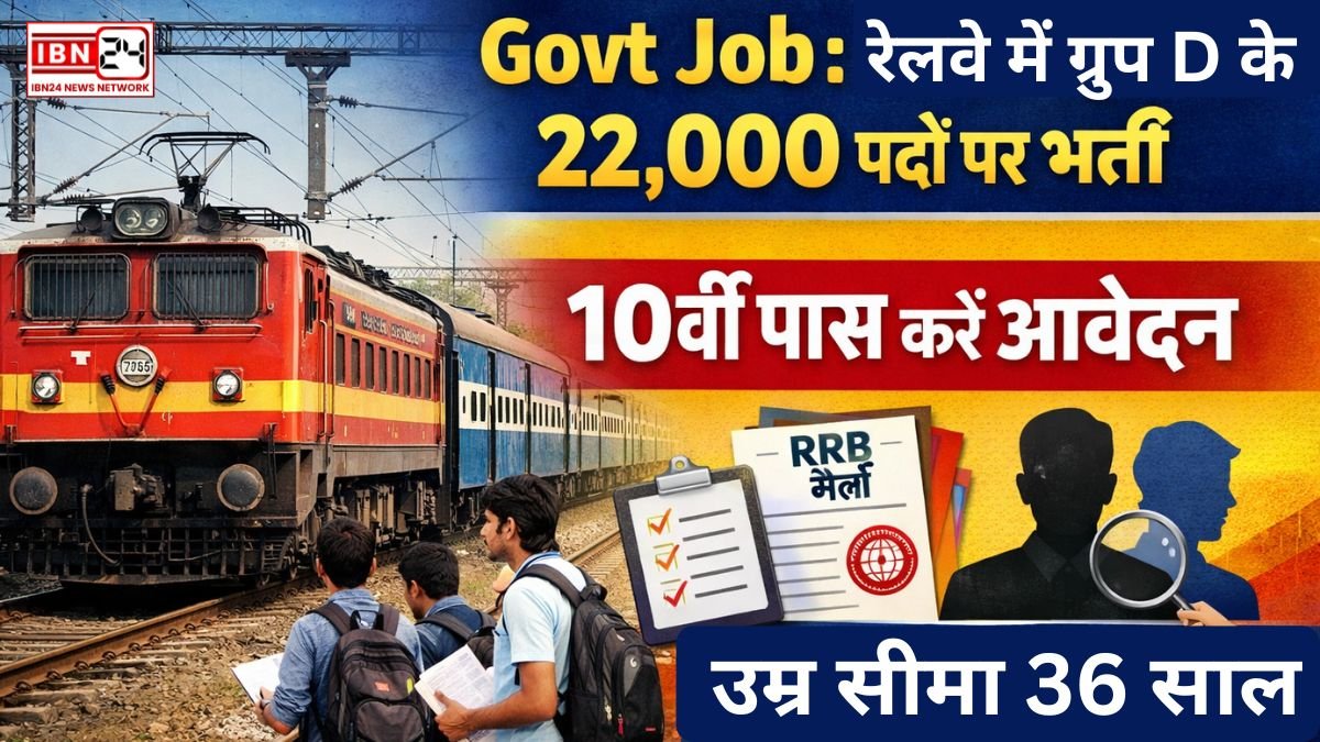 Govt Job: रेलवे में ग्रुप D के 22,000 पदों पर भर्ती—10वीं पास करें आवेदन, उम्र सीमा 36 साल! भारतीय रेलवे में सरकारी नौकरी का सपना देख रहे युवाओं के लिए एक बहुत बड़ी खुशखबरी है। रेलवे भर्ती बोर्ड (RRB) ने ग्रुप D के 22,000 पदों पर भर्ती का नोटिफिकेशन जारी किया है। यह भर्ती उन उम्मीदवारों के लिए एक शानदार अवसर है जिन्होंने केवल 10वीं कक्षा पास की है और एक सुरक्षित सरकारी नौकरी की तलाश में हैं।