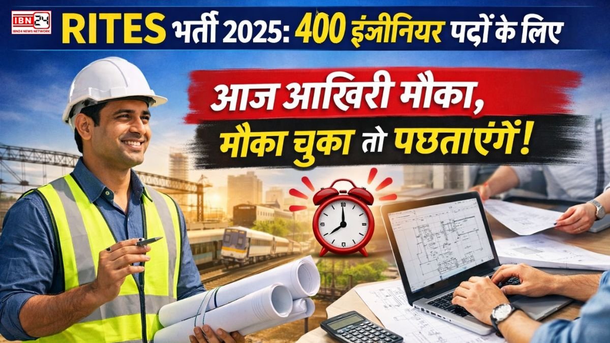 RITES भर्ती 2025: 400 इंजीनियर पदों के लिए आज आखिरी मौका, मौका चूका तो पछताएंगे! सरकारी नौकरी पाने का यह एक बेहतरीन मौका है, जिसे आपको हाथ से नहीं जाने देना चाहिए। 400 पदों की यह बड़ी भर्ती और बिना नेगेटिव मार्किंग वाली परीक्षा आपके चयन की संभावनाओं को बढ़ा देती है। तो देर किस बात की? अभी अपना लैपटॉप उठाएं और आवेदन प्रक्रिया पूरी करें!
